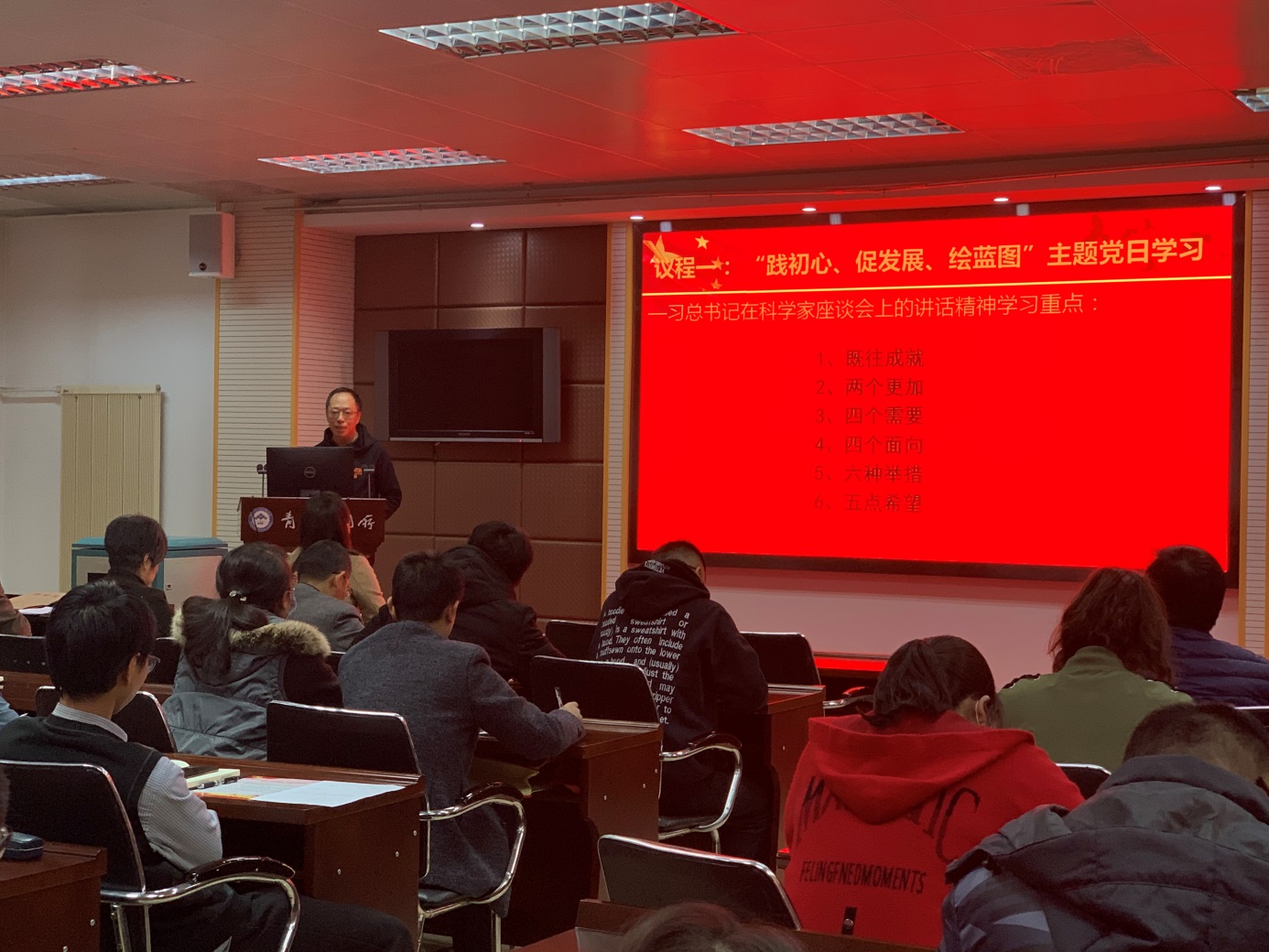 会议的主要内容是观摩青海盐湖所盐湖资源化学实验室党支部党员大会,交流全所各党支部推进实施“基层组织建设年”活动情况。会议由青海盐湖所盐湖资源化学实验室党支部书记海春喜主持,所党委委员、纪委委员,各党支部支部委员和盐湖资源化学实验室党支部全体党员参加了会议。