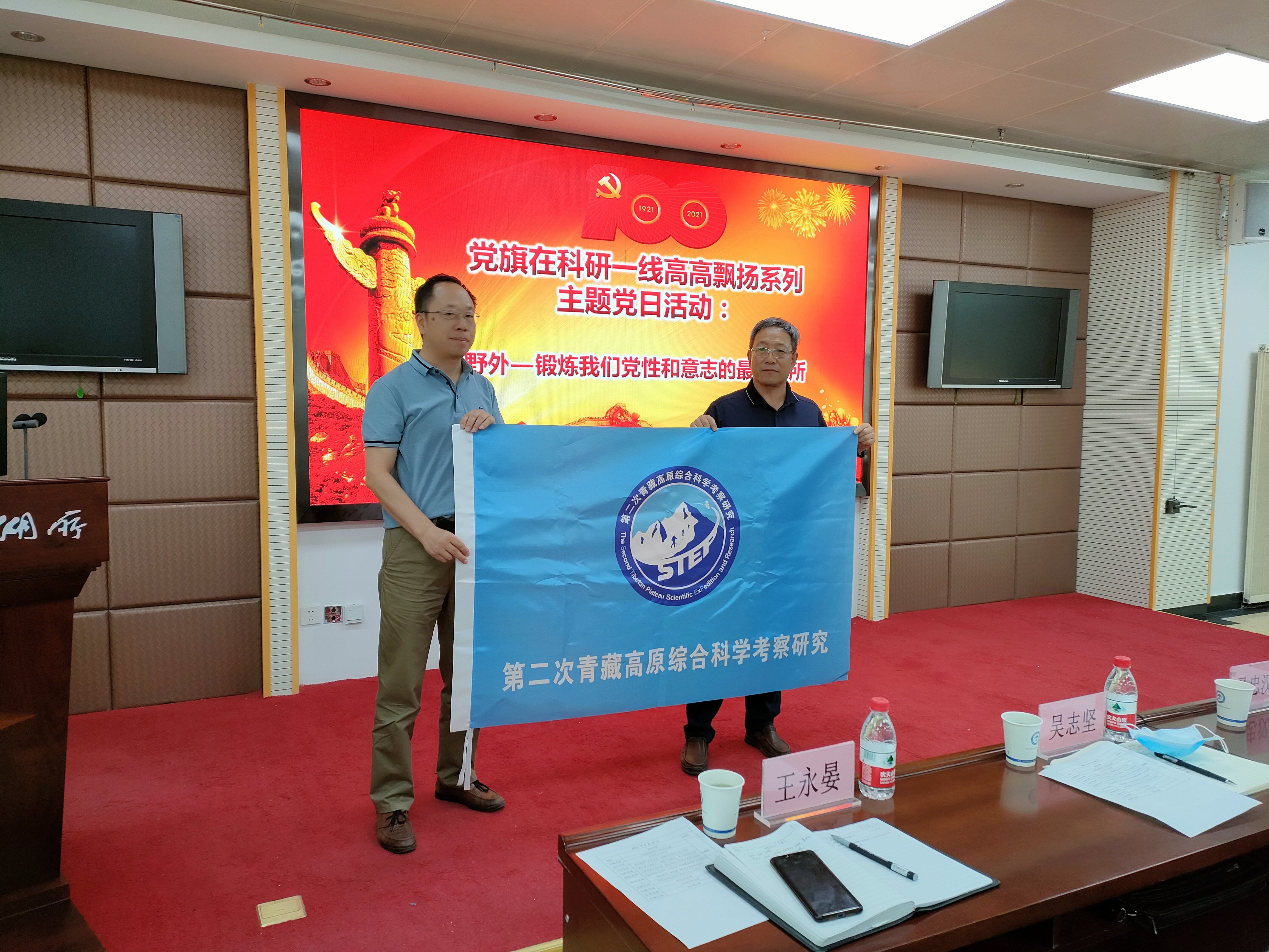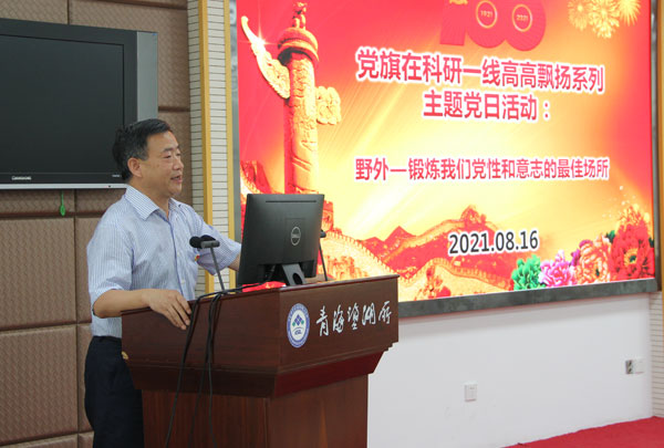 8月16日上午,在青海盐湖所西藏盐湖科考队出征前一天,所党委联合所属盐湖地质与环境实验室党支部开展了 “让党旗在科考一线高高飘扬”主题党日活动。所党委委员、地学党支部全体成员及所内其他部门开展野外的科考的专家共60余人参加了此次活动。本次活动由副所长、盐湖地质与环境实验室党支部书记王建萍主持。