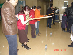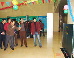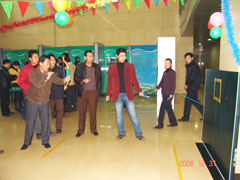 今年的迎春趣味联谊活动内容丰富多彩,形式多种多样,主要有飞镖、摸鼻子、踩气球、投蓝、猜词等小游戏。由于是趣味活动,联欢会上大家情绪高涨,欢声笑语不断,所有参赛人员积极涌跃,活动现场充满了友好、互助的欢乐气氛,使大家在开心的快乐中渡过了2006年的最后一天。