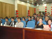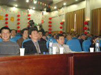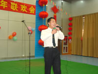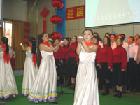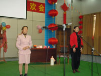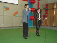 大红的灯笼,五色的彩旗,象征团结一心的中国结,将报告厅装饰一新,也充满了节日的喜庆气氛。