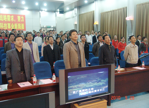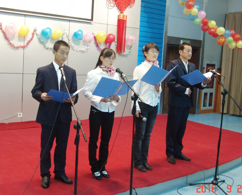 满怀深情,歌声嘹亮, 9月28日上午,青海盐湖所学报告厅成了歌的海洋,为歌颂和弘扬爱国主义精神,激发全所职工和研究生报效祖国的热情,全所喜迎祖国六十一华诞大合唱专场比赛在这里隆重举行。