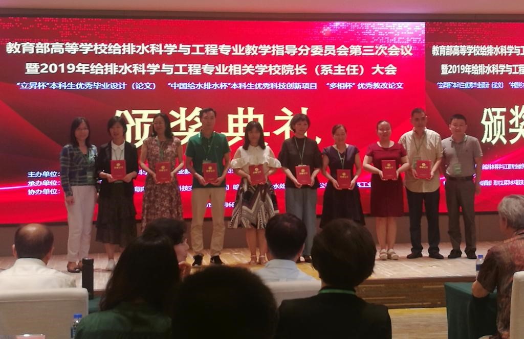 近日,我校环境与市政工程学院师生在教育部高等学校给排水科学与工程专业教学指导分委员会(以下称教指委)举办的大赛中获得佳绩。其中,穆荣老师指导的2015级给排水专业5班李智朗同学的毕业设计《阳泉市环宇宾馆给水排水工程设计》获得“立昇杯”本科生优秀毕业设计(论文)二等奖;肖淑敏、焦秀梅、赵连梅、张春青和刘月敏老师撰写的教改论文《基于翻转课堂的环境生物学实验PBL教学设计与实践》获得“多相杯”教改优秀论文二等奖,这是我校教师首次获得此项殊荣。