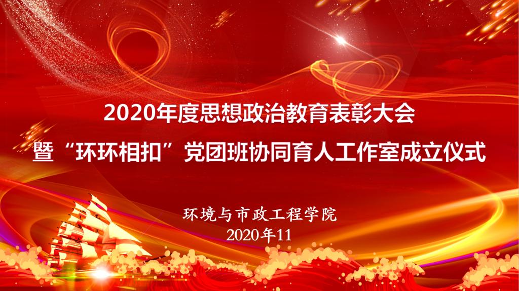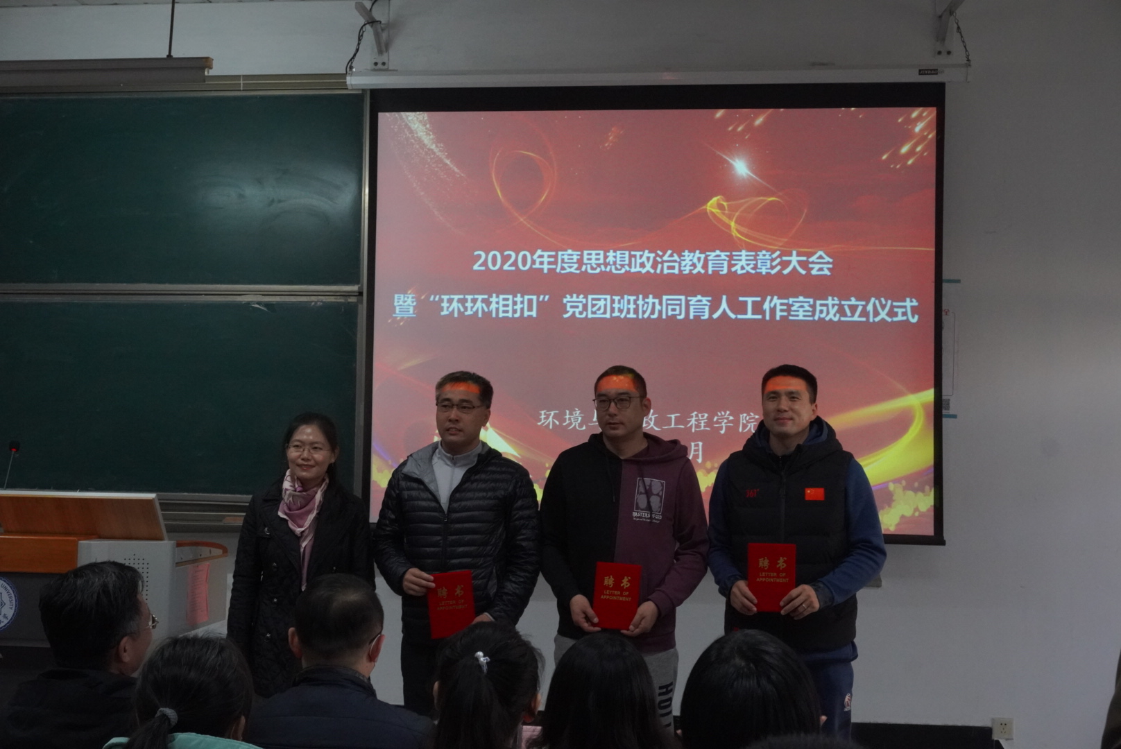 会上宣布了《关于表彰环境学院2020年度思想政治教育优秀集体及先进个人的决定》,学院领导班子对在2020年取得突出成绩的个人和集体表示热烈的祝贺,向辛勤培育学生健康成长的各位老师表示衷心的感谢,并为获得先进个人和优秀集体的同学颁奖。随后介绍了“环环相扣”党团班协同育人工作室运行机制,并宣读成立决定,校党委学工部部长王健为工作室指导教师颁发聘书。