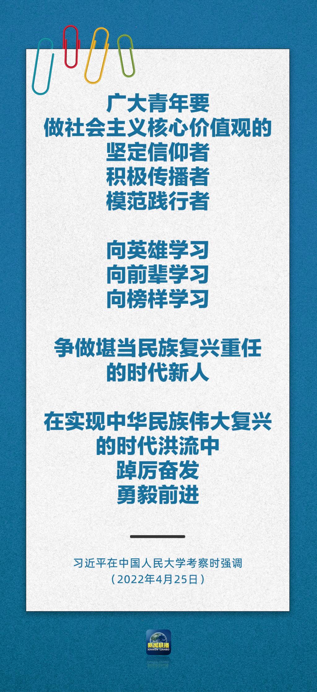 在五四青年节即将到来之际,中共中央总书记、国家主席、中央军委主席习近平25日上午来到中国人民大学考察调研。习近平代表党中央,向全国各族青年致以节日的祝贺,向中国人民大学全体师生员工、向全国广大教育工作者和青年工作者致以诚挚的问候。
