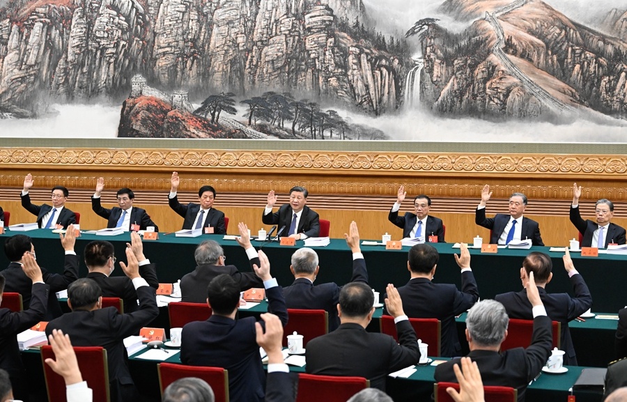 10月18日,中国共产党第二十次全国代表大会主席团在北京人民大会堂举行第二次会议。习近平、李克强、栗战书、汪洋、王沪宁、赵乐际、韩正等出席会议。新华社记者 申宏 摄
