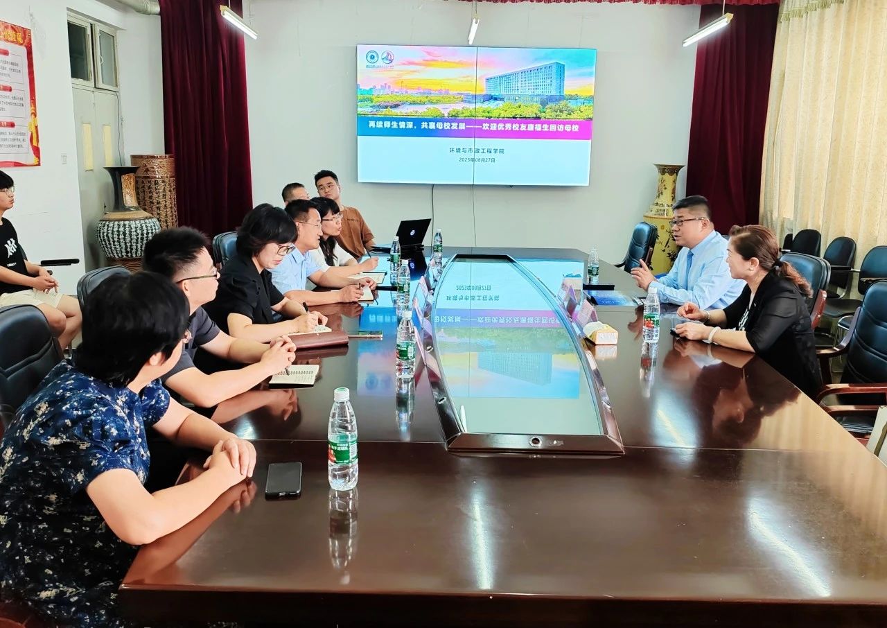 在天津城建大学45周年校庆来临之际,天津市环境建设投资有限公司董事长、1996届给排水专业毕业生唐福生心系学生成才和学校发展,返校参加校友座谈。环境与市政工程学院院长刘志华、党委副书记沈杰然、副院长张新波、副院长王喆、教师代表王蕾、张宏伟、学生工作教师及部分学生骨干参会。