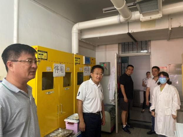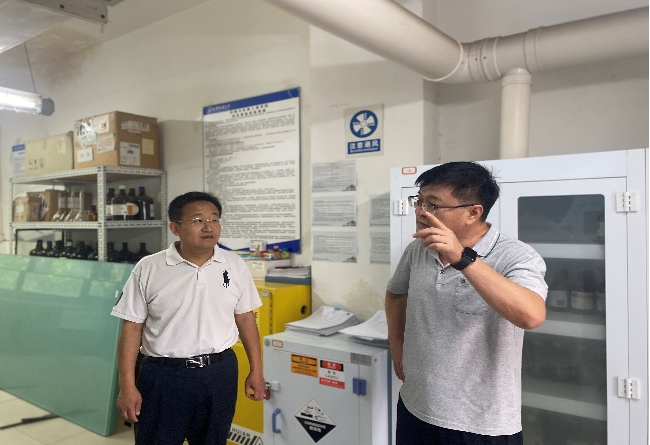 检查过程中,检查组重点对实验室安全、消防设备、气体钢瓶、特种设备、危化品储存等进行细致检查,并与实验室教师、学生进行交流,强调实验室安全工作的重要性。结合学科特点,刘志华在检查过程中提出两点要求:一是实验进行中不得脱岗,重点关注实验设备的使用和管理,实验完成后要及时断水断电关好门窗,确保安全;二是暑假实验室开放期间,各实验室必须做好假期实验室准入管理,实验期间教师在值不离岗,严格落实假期值班制度,确保师生的人身安全。