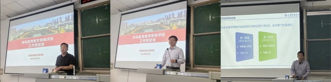 教学副院长王喆在会上解读了教育部、天津市教委印发的普通高等学校本科教育教学审核评估方案,根据天津城建大学迎评工作安排,并结合学院实际,对我院迎评工作进行了详细安排。他强调,全院教师要明确时间线、路线图,倒排工期,挂图作战,对各项支撑材料进行再梳理、再凝练,重点突出学院特色和优势。要牢固树立“评估工作人人有责”的大局意识,根据专家调阅材料、听评课和访谈关注要点,明确责任,查漏补缺,做实做细每项任务。