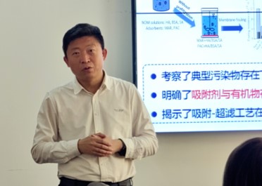 在互动交流环节,环境与市政工程学院刘颖老师与梁恒教授就通量调控型膜净水新工艺的后续清洗技术及膜材料的可扩展性应用进行了深入探讨;刘阳老师则聚焦复合功能型膜的开发与梁恒教授进行了深入交流,现场学术氛围浓厚,讨论热烈。
