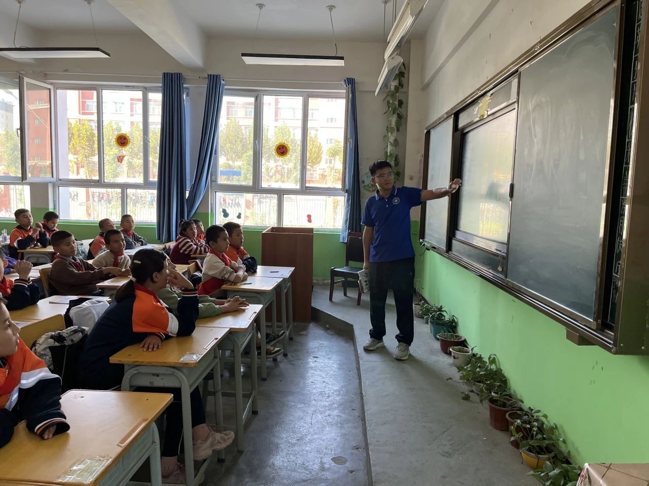 援疆支教是一段难忘的经历。在这里,我深刻感受到了教育的力量和边疆地区对知识的渴望。与当地师生相处,我更加理解了多元文化和民族团结的重要性。教学中,我遇到了各种挑战,但也收获了满满的感动。看到孩子们求知的眼神,我更加明白了教育的意义。说到这里,最最最感到值得一提的是,他们基本上没有近视,他们每个人的眼睛都是清澈明亮的。虽然他们对未来、远方和梦想的感知还不太清晰,但他们每个人都独特且丰盈、单纯且善良,孩子们拥有健康的体魄、爽朗的笑容和幸福的学校生活。在这里,他们活泼开朗不爱玩手机,他们喜欢洒满阳光的操场,男孩子喜欢踢足球,女孩子喜欢唱歌画画;在这里,他们纯粹且热情,我想倾尽全力把我所学、所知、所感分享给每一个孩子。这段经历让我更加珍惜现有的生活和工作,也激励我在未来的道路上更加努力。援疆支教也是我人生中一笔最宝贵的财富。