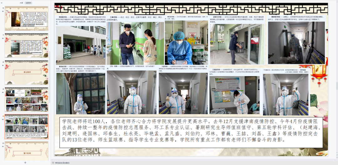 院长对学校中期工作推动会的相关要求进行了传达并对全体教师提出期望,要求全体教师切实把思想和行动统一到党的二十大精神上来,以师德师风建设提振学院士气,以高度的政治责任感和历史使命感担负起立德树人的职责任务,努力把党的二十大精神体现到教育教学、科学研究的主责主业和学校学院工作中,确保党的二十大精神在环境学院落地见效、走深走实。