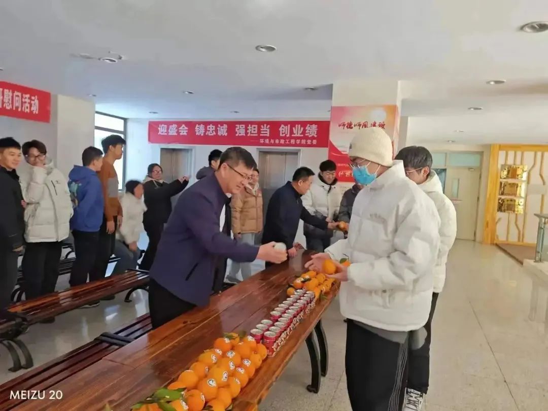 活动现场,学院党委书记朱复义、院长刘志华亲切询问了考研学子的备考情况、目标院校等情况,希望同学们在最后的冲刺阶段,要保持积极的心态,按照复习计划稳步向前、奋斗到底;叮嘱同学们在紧张的备考之余还要注意自己的身体健康,劳逸结合,保持良好的身心状态迎接考试。同时将学院精心准备的象征“成功上岸”大甜橙、“好运旺旺”旺仔牛奶等寓意满满的小礼物亲手发放到备考学子手中,预祝他们成功上岸,金榜题名。