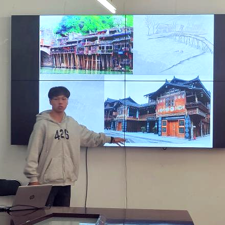 2022级给排水科学与工程专业的苗族学生歹天杨,来自神奇秀美的云南省,他从自己的家乡谈起,详细讲述了苗族传统节日“动春节”、传统民俗“五色饭”、传统民居“吊脚楼”,并幸福地晒出了妈妈做的传统美食。