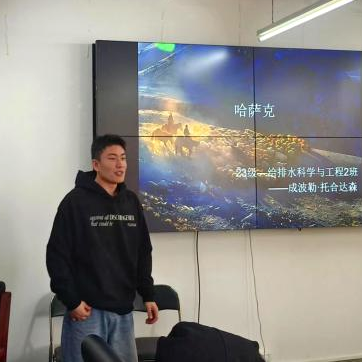 2023级给排水科学与工程专业的哈萨克族学生成波勒·托合达森,来自美丽的新疆阿勒泰地区,他从哈萨克民族的语言、建筑、音乐等方面向大家做了分享,并现场为同学们带来了民族乐器冬不拉弹奏,点燃了整场活动的气氛。在悠扬婉转的音乐声中,大家一同领略了来自哈萨克族独特的文化风情。