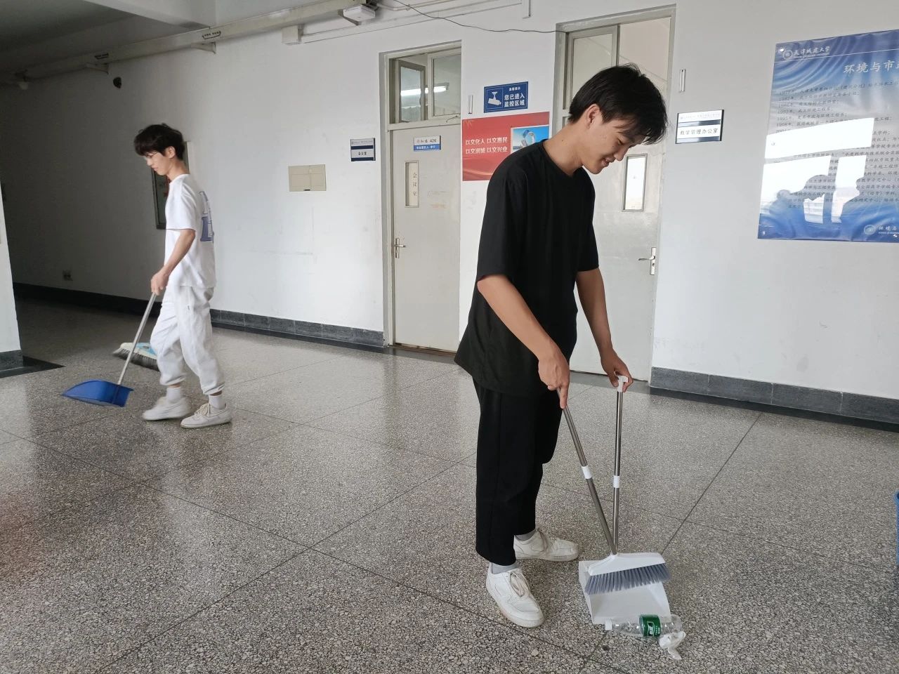 为积极践行劳动教育,学院组织学生对宿舍、教室、户外等地方进行了大扫除。