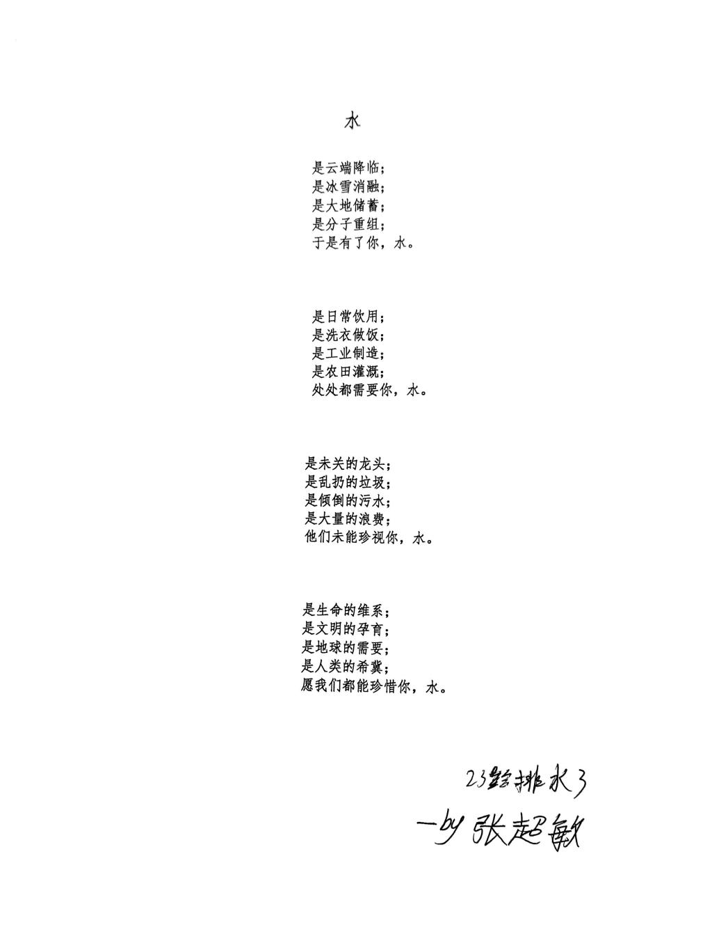 水是生命之源,地球上可直接利用的淡水资源是有限的。为提高同学们节约用水重要性、必要性的意识,学院在五一劳动节前夕开展节水作品征集赛。