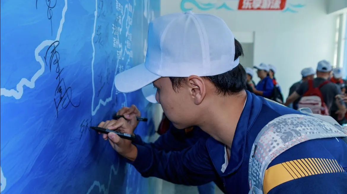 净滩活动结束后,全体志愿者拿起画笔,共同绘制海洋环保画,在斑斓的色彩与璀璨的日光下,同学们互帮互助,在汗水与海水交织挥洒中重筑美丽海岸线,共同诠释着“奉献、友爱、互助、进步”的志愿者精神。