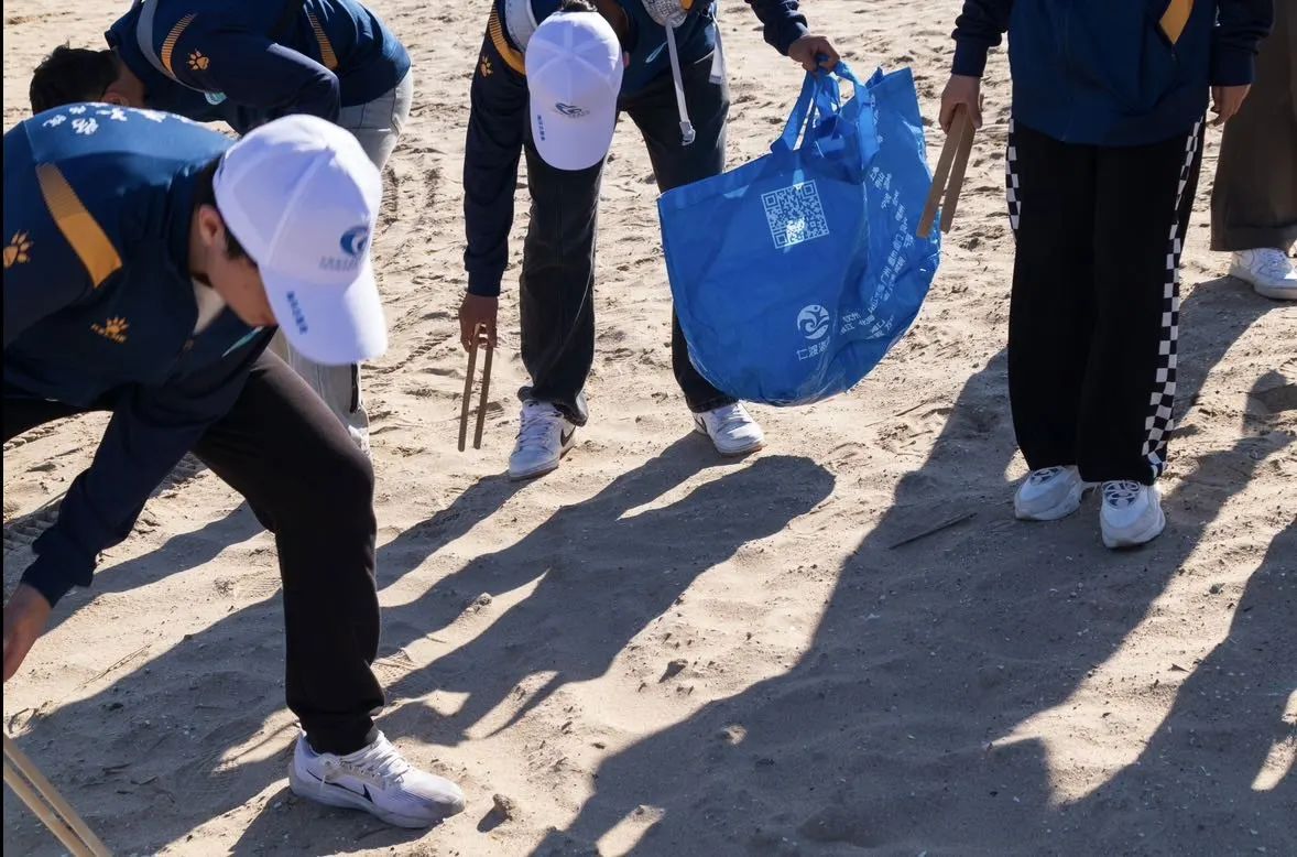 本届净滩活动中,我院青年志愿者与来自天津医科大学、天津海运职业学院等高校及20余名国际留学生一起,手持清洁工具,细心捡拾海滩上的塑料袋、饮料瓶、泡面等垃圾,同学们忙碌的身影成为了海岸线上一道亮丽的风景线,吸引了众多市民和游客的关注和赞誉。