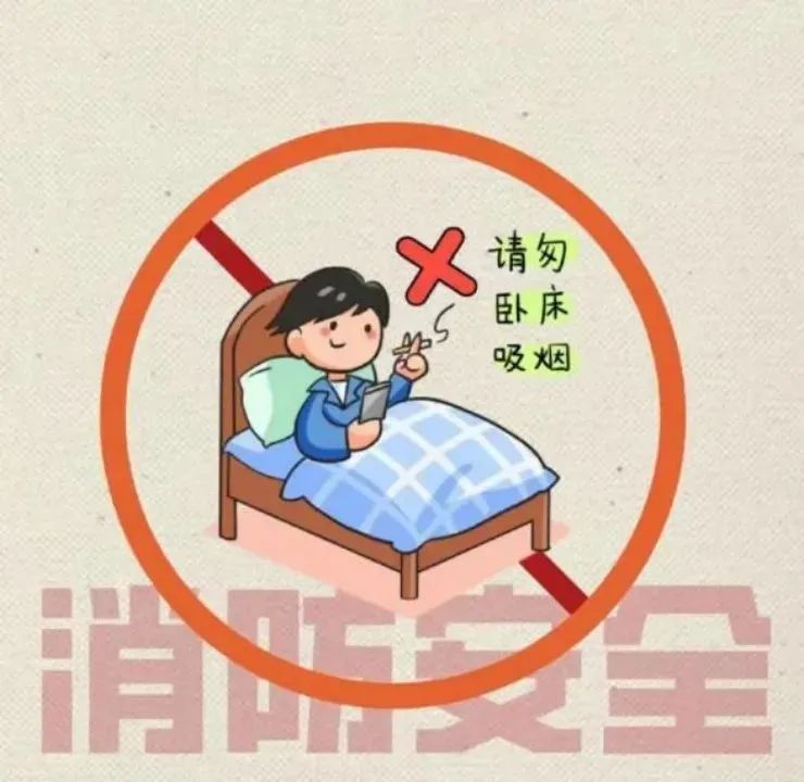 在宿舍吸烟,未熄灭的香烟一旦掉落在被褥、衣服上,极易引起火灾。随手将未熄灭的烟头丢弃于路边、垃圾桶以及绿化带内,也很容易发生火灾。