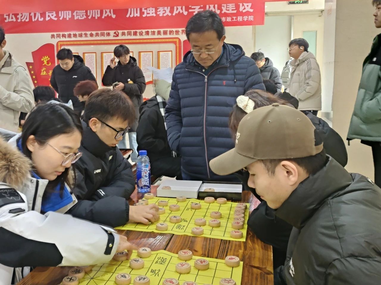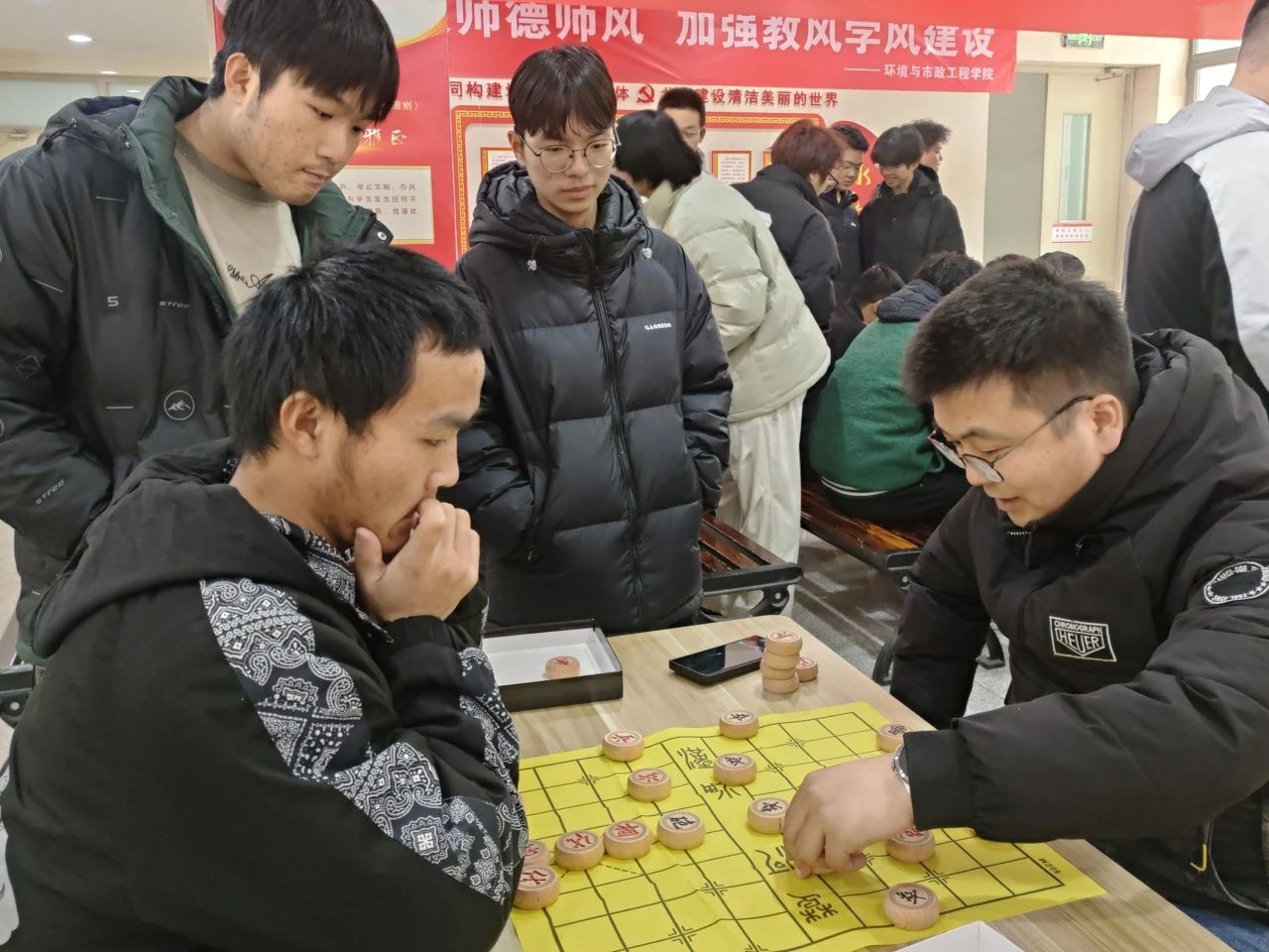 12 月 12 日,环境与市政工程学院第三届“弈德杯”象棋比赛在行知楼三楼火热开赛,为寒冷的冬日校园增添了一抹智慧与激情交织的亮色。