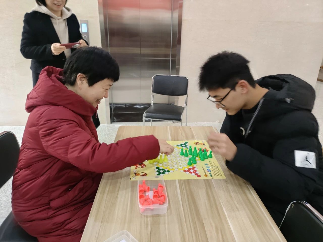 此外还准备了跳棋给师生娱乐,同样精彩纷呈。选手们谋划着每一颗棋子的跳跃路径。五颜六色的棋子在棋盘上轻盈跳动,宛如灵动的精灵。比赛过程中,欢声笑语与紧张思索交织在一起,选手们在轻松愉快的氛围中展开了一场智慧与速度的较量。