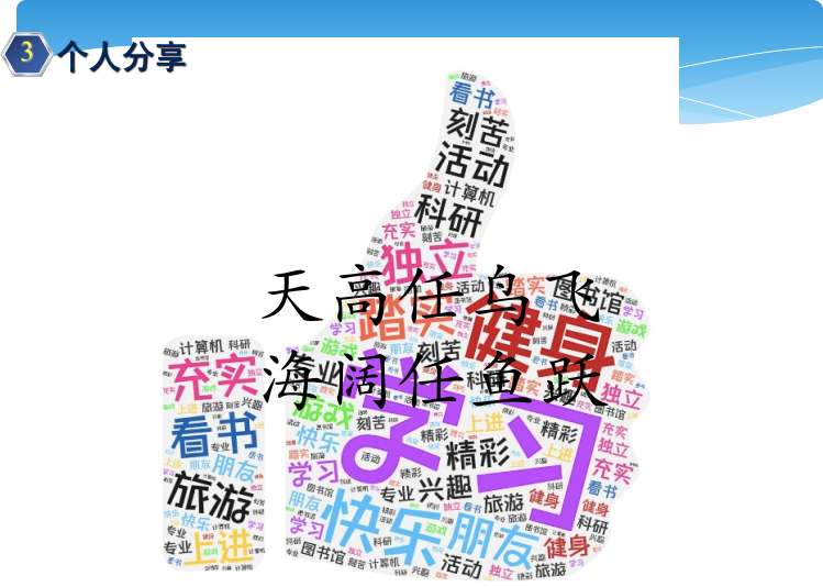 第三部分他主要以自身研究经历和取得的成绩激励学弟、学妹们积极投入到科学研究中。