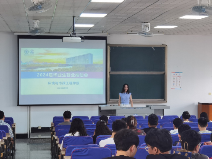 为深入学习贯彻习近平新时代中国特色社会主义思想和党的二十大精神,全面落实《“十四五”就业促进规划》要求,切实提高毕业生就业质量,9月7日,环境与市政工程学院在西配302教室举办2024届毕业生就业推动会,环境学院全体2024届本科毕业生、硕士毕业生参会。