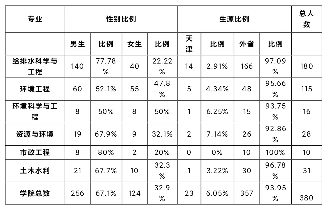 1.给排水科学与工程:给排水科学与工程专业创办于建校之初1978年最早的专业之一,是天津市品牌专业、卓越工程师培养计划专业、优势特色专业,1994年以A级成绩通过专业教学指导委员会对毕业设计的评估,2009年通过住建部高等教育给排水科学与工程专业评估委员会本科教育评估,2014年通过第一次复评,2019年通过第二次复评(认证);2019年成为首批天津市一流专业,2020年获批国家级一流本科专业建设点。市政工程学科1998年获得硕士学位授予权,为我校第一个硕士点,2006年获批天津市第三批重点学科,2007年获批建筑与土木工程领域(市政工程方向)工程硕士授权点,2017年所属土木工程一级学科获批天津市一流学科;2018年荣获天津市教学成果二等奖;2019年获批2项天津市一流课程建设项目。本科毕业生就业率平均达93%以上,在国内同领域具有很高的知名度。学院与美国、日本、加拿大、澳大利亚、波兰等多个国家建立国际交流和签订人才联合培养项目,拓宽学生国际视野。