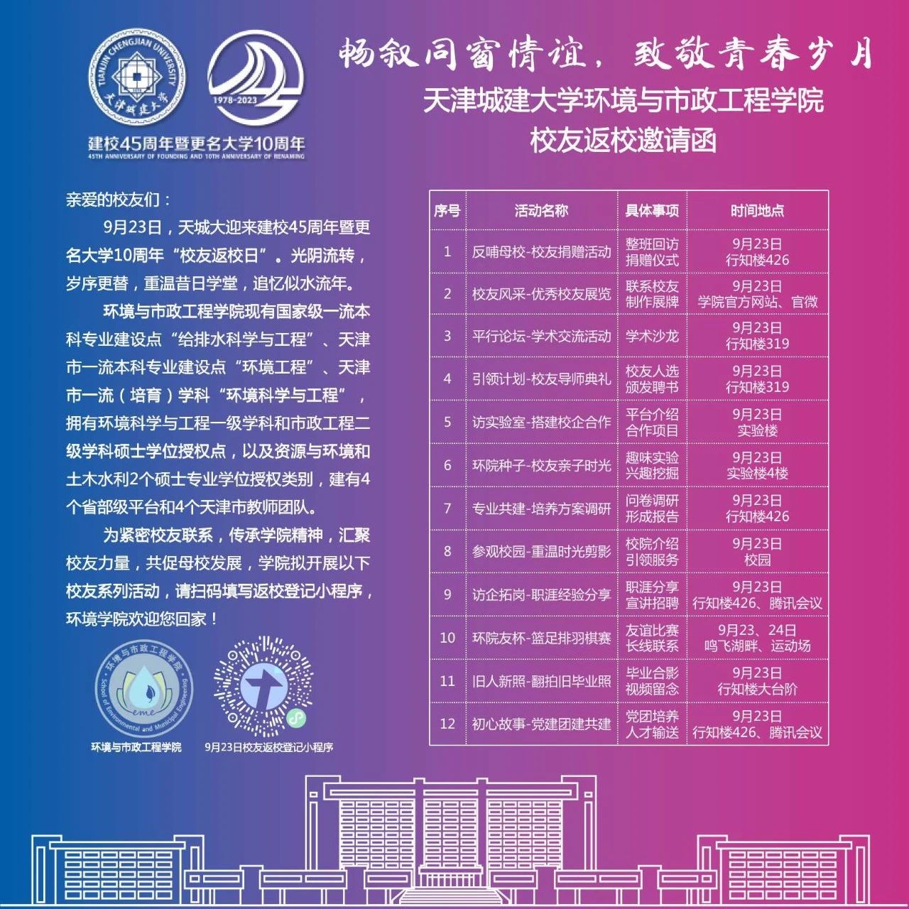 天城大环境学院9.23校友返校邀请函