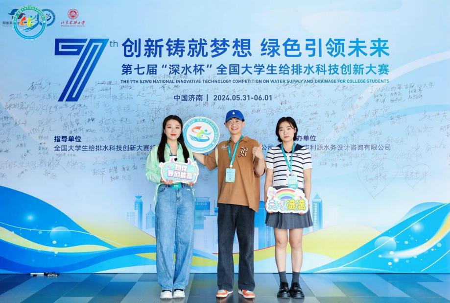 近日,第七届“深水杯”全国大学生给排水科技创新大赛在山东济南举办。我校校党委常委、副校长崔雅利带领环境与市政工程学院院长刘志华、副院长张新波和王喆、市政工程系主任刘阳等一行参加总决赛,我校共有3支队伍进入决赛,其中定向专题竞赛1支队伍,创意大赛2支队伍,最终斩获二等奖1项,三等奖2项,最佳风采奖2项。