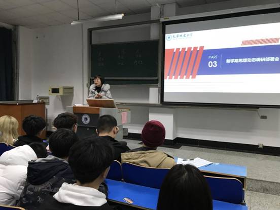 会议第三部分内容是新学期思想动态调研部署,深入了解学生的思想情况及日常生活、学习情况,收集学生在日常工作中存在的困难和建议。