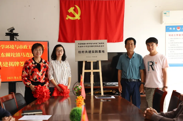 党史学习教育开展以来,环境与市政工程学院党委结合学科评估、乡村振兴实践行、校友工作、劳动教育等实际要求,积极探索创新学习形式,推动党史学习教育走深走实。6月7日,在学院党委指导与支持下,学生工作办公室主任、院团委书记携师生党员代表一行18人深入宁河区东棘坨镇马连庄村,与村两委班子成员及老党员代表共同参加党建共建签约揭牌仪式。