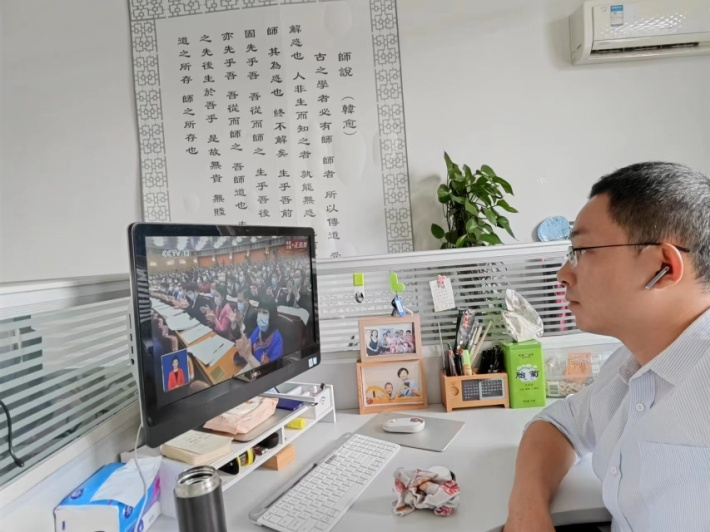 其他有教学任务、居家办公的老师采取灵活方式,认真收听收看中国共产党第二十次全国代表大会开幕会。