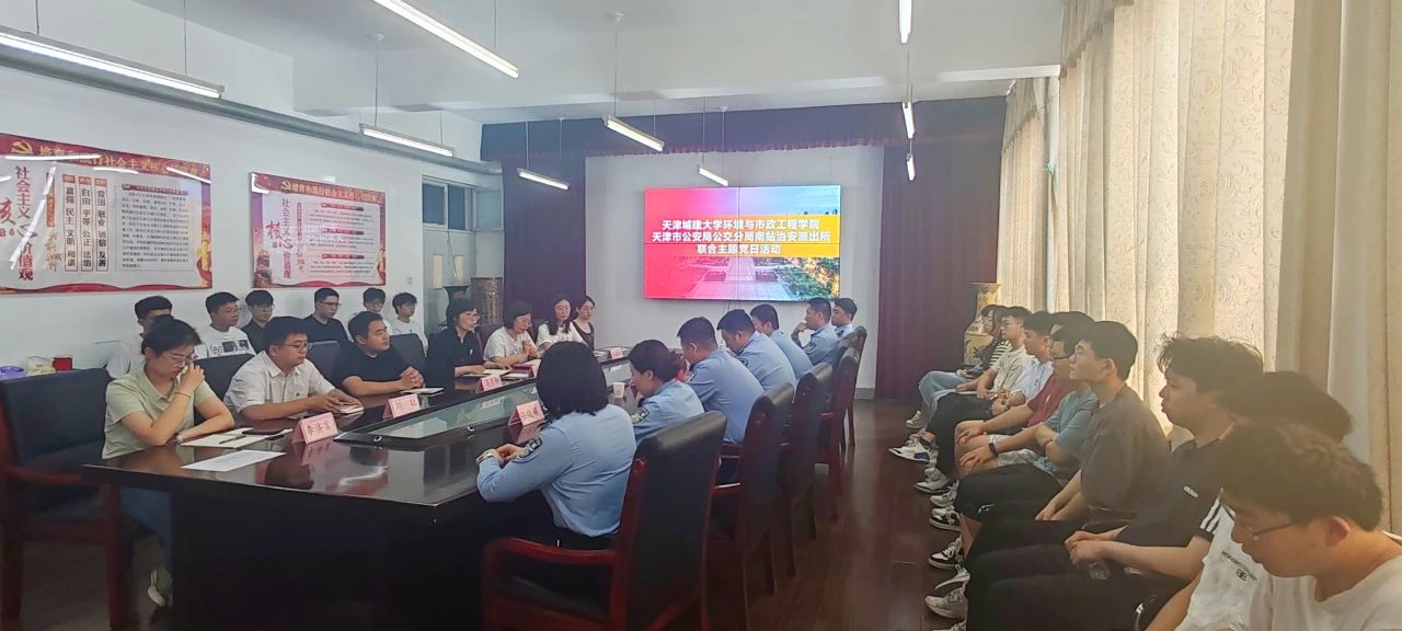 为充分发挥党建引领作用,不断探索党建工作新形式,推动学院育人工作高质量发展,近日,环境与市政工程学院党委联合天津市公安局公交分局南站治安派出所党支部开展联合主题党日活动,院党委副书记沈杰然携学生党支部书记及全体毕业生党员、天津市公安局公交分局南站治安派出所党支部副书记管哲、纪检专员王军及派出所党员代表参加本次共建活动。