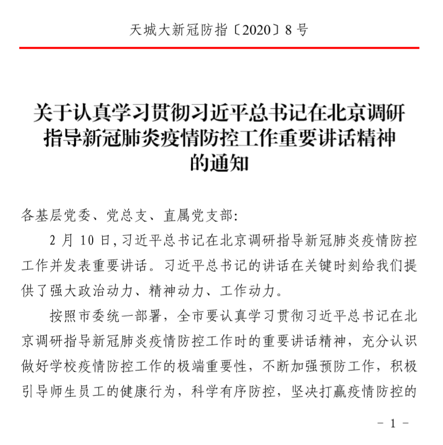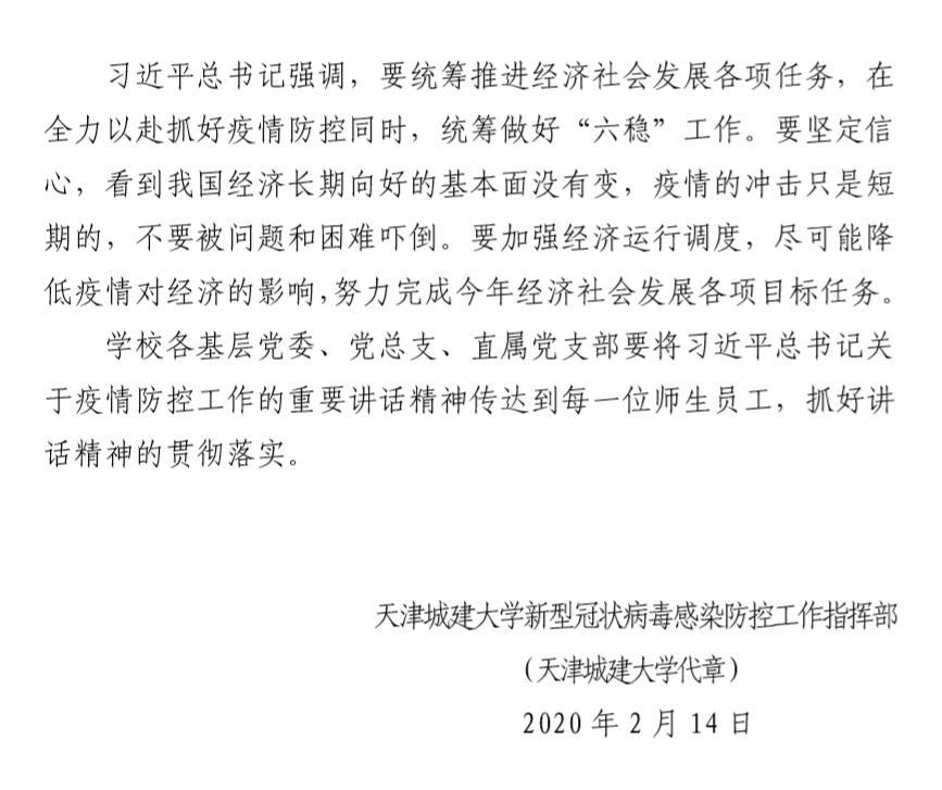 天津城建大学新型冠状病毒感染防控工作指挥部文件