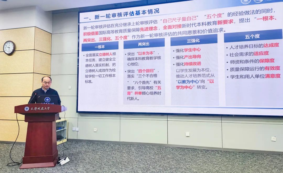会上,教务处副处长王玉良对新一轮审核评估的基本理念、目标方法、指标体系、实施流程等进行了全面解读,并介绍了各教学单位自评自建的工作内容及进度安排。