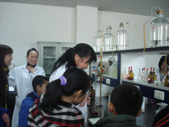 在科技处同志的带领下,西宁古城台小学师生先后参观了展览室、分析测试部、分析化学实验室、图书阅览室。参观展览室时,学生们被种类繁多的盐湖资源深深吸引,情绪高涨,表现出极大的学习热情,互动式的提问交流更让学生们大大提高了对盐湖的学习兴趣。随后,在分析实验室内,老师为学生们做了演示实验,神奇的颜色变化让学生们兴奋不已,实验室内一片欢腾。最后,师生们来到图书阅览室,工作人员为他们展示了图书文献的查阅方式。