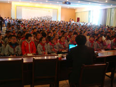 在古城台小学会议室,我所乌志明博士面向该校四、五两个年级400多小学生做了1个多小时的“盐与盐湖”科普报告。