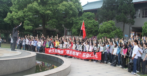 4月30日,来自中南财经政法大学、武汉大学等高校的100多名大学生和来自大楚网的100名志愿者在武汉植物园举办“感恩地球”环保成人礼,大声喊出爱家庭、爱社会、爱地球的口号。这100多名大学生都是刚刚成年,当天他们在武汉植物园以环保成人礼的方式来纪念成长、步入成年。