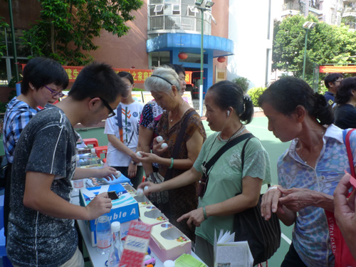 社区公众在进行垃圾巧分类游戏