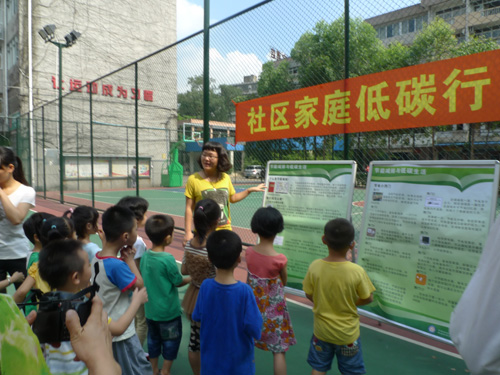 为小朋友们讲解节能减排展板