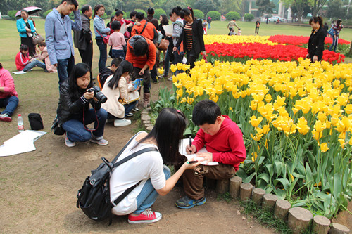 活动中,孩子们在志愿者的带领下手舞足蹈的跳起了“种太阳”,并将他们亲手画的水彩画于花径广场的长廊上展出,不少社会爱心人士纷纷称赞其绘画作品,并伸出双手为孩子奉献了一片爱心。随后,武汉植物园科普导游带领孩子参观了景观温室,让孩子与大自然亲密接触。在自然的环境下,孩子们天真浪漫,不时地用手去感受自然界的美妙,长期照顾孩子的家长也得到了身心的放松。最后,在风情万种的郁金香丛中,孩子们拿起画笔画出一幅幅美丽的画卷。