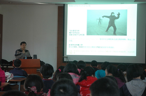 同学们还向孙杨博士提出了许多问题:美国大使馆PM2.5每日指数与北京天气预报的PM2.5指数为什么有很大差距、中国的西南部与东北部地区为什么空气污染相对较少、天气预报中气象局公布的PM2.5数据是如何监测的......孙杨博士为同学们一一讲解,他准确易懂的解答也深受同学们的好评。