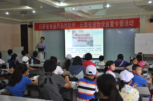 此次夏令营活动内容丰富,参观昆明植物所种子博物馆、标本馆、植物科普馆、植物化学与西部植物资源国家重点实验室、百草园等科普场所,活动还邀请了孙汉董院士做“天然药及西部植物资源”(由助手普建新代讲)、中科院昆明植物研究所副所长、国家重点室主任刘吉开研究员做“菌物天地”的科普专题讲座,同时还为小朋友准备了标本制作等趣味活动。此次活动为营员准备了《多姿多彩的云南野生菌》、《转基因问答》及《食品药品安全知识问答》3种科普手册,在家长和辅导员的带领下,各位营员自学相关知识,并准备在8月13日的闭营式参加知识竞赛。