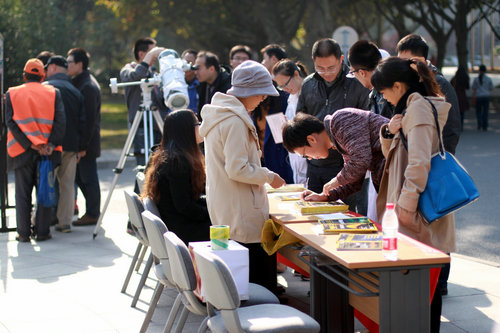 11月4日,中国科学院国家天文台研究生会在中科院奥运村园区举办了一场路边天文科普活动。该活动是面向中科院奥运园区所有师生以及社会公众的天文科普类公益活动,旨在让公众走进天文,零距离接触天文,满足公众对了解月球、太阳以及星系等自然天体的浓厚兴趣。活动受到国家天文台研究生部的指导和大力支持,也受到了《中国国家天文》杂志社的赞助。