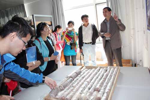 师生们首先参观了青海盐湖所的科技展厅,青海盐湖所所长特别助理、信息中心主任李发福为同学们详细介绍了盐湖里丰富多彩的、可开发的有用资源,以及盐湖资源在我国国防、农业、化工等行业发挥的重要作用,使同学们零距离接触了盐湖的盐花、盐类标本及其科学知识,激发了同学们对盐湖科学的浓厚兴趣。