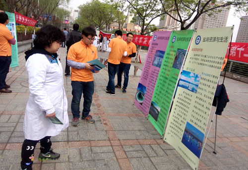 5月14日,以“科技创新追梦未来”为主题的“中国科学院第十二届公众科学日”科普宣传活动在全国近百个科研机构同时举行。中国科学院青海盐湖研究所的科普志愿者在西宁市中心广场举办了以“盐湖资源与生活”为主题的科普宣传活动。