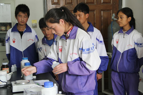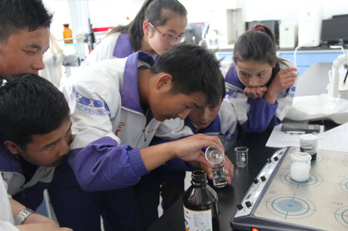 这些学生是来自青海盐湖所定点扶贫单位——民和县杏儿乡日扎村的中学生。杏儿乡是一个藏族乡,位于青海省和甘肃省的交界处,山大沟深,干旱少雨,资源贫乏,教育资源尤其匮乏,参加此次活动的大部分学生都是来自贫困家庭的藏族学生。为了满足贫困山区的孩子对知识的渴望,结合青海盐湖所申请的中国科学院科普项目,特举办了这次科学探究活动。