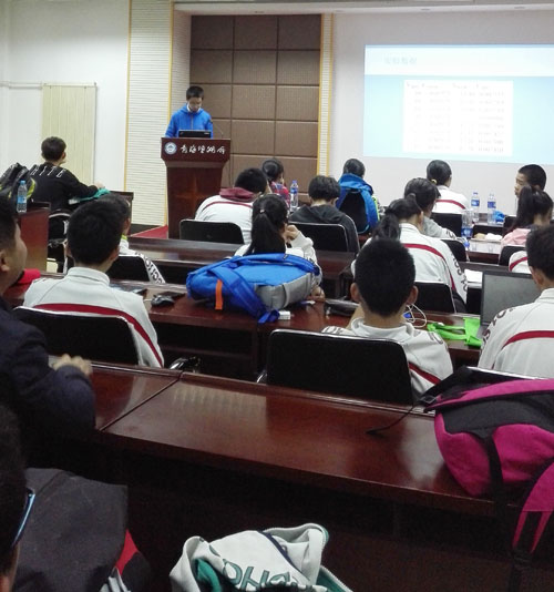 下午,在科研导师的带领下,学生们根据个人兴趣选题、分九组各自参与了一个完整的科研小课题,体验了一把“微科研”过程。为了检查科学探究活动成效,也为了给同学们创造一次展示自我、共同交流的机会,科学实验完成后,在青海盐湖所会议室,全部九个科研小组进行了汇报。汇报完成后,科研导师们对学生们开展科研工作的表现进行了认真点评。