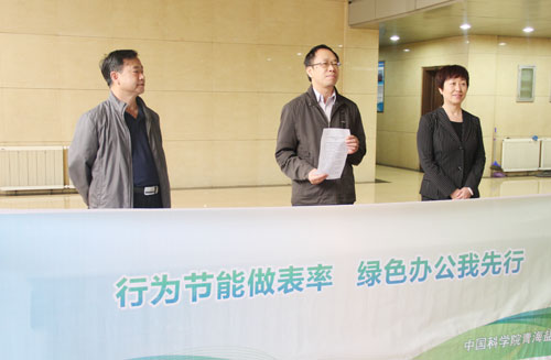 启动仪式上,主持工作的副所长吴志坚要求全所职工及学生积极做行为节能、绿色办公的自觉者、先行者和创新者,珍惜每一度电、每一滴水、每一张纸、每一件办公用品,以绿色发展理念为指导、以节约适度为原则,控制每一个能源资源使用行为;鼓励大家从现在做起,从自身做起,从点滴做起,带头传播生态文明思想,以做好身边事示范引领身边人,形成绿色办公群体效应。
